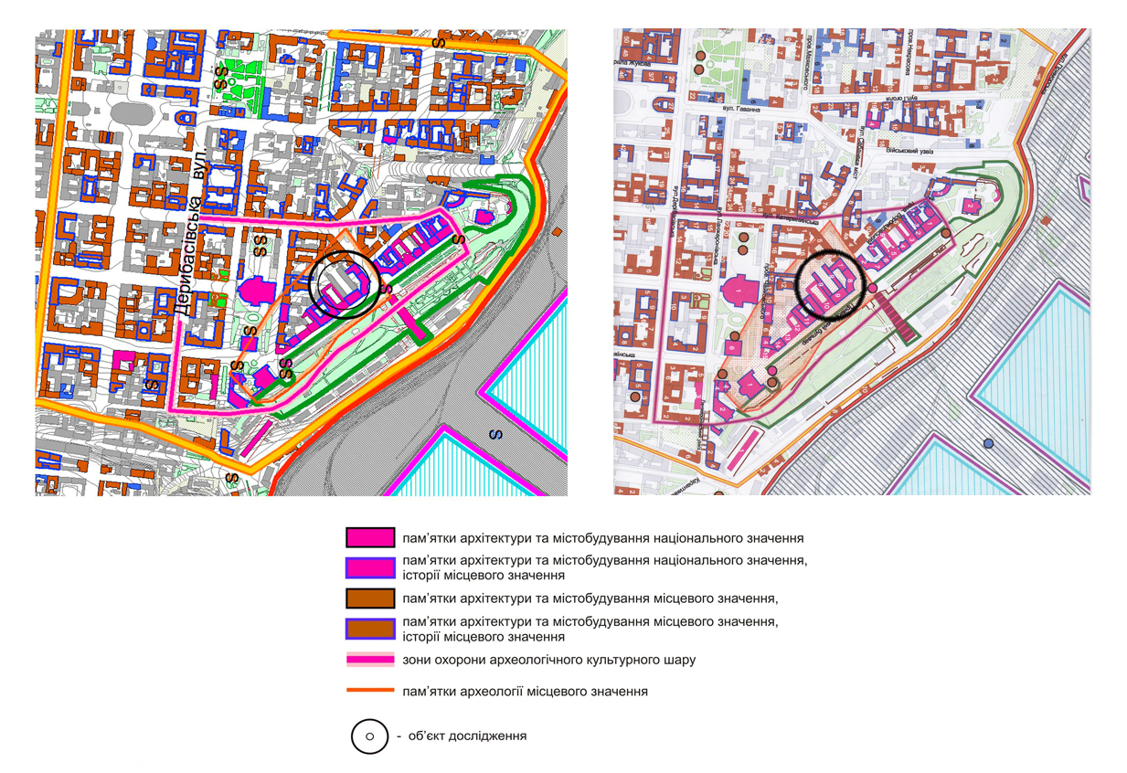 - «Проекти реконструкції забудови на території історичних ареалів населених пунктів базуються на матеріалах історико-архітектурних опорних планів та науково-проектної документації з визначення меж та режимів використання зон охорони пам’яток культурної спадщини» – ДБН Б.2.2-3:2012. При этом, памятник расположен в Комплексной охранной зоне, к которой тем же ИАОП определены требования: «На території комплексної охоронної зони історичного центру…допускається лише регенерація, що … забезпечує збереження видового розкриття історичних ансамблів і комплексів»» (Проектно-регуляторный раздел ИАОП).